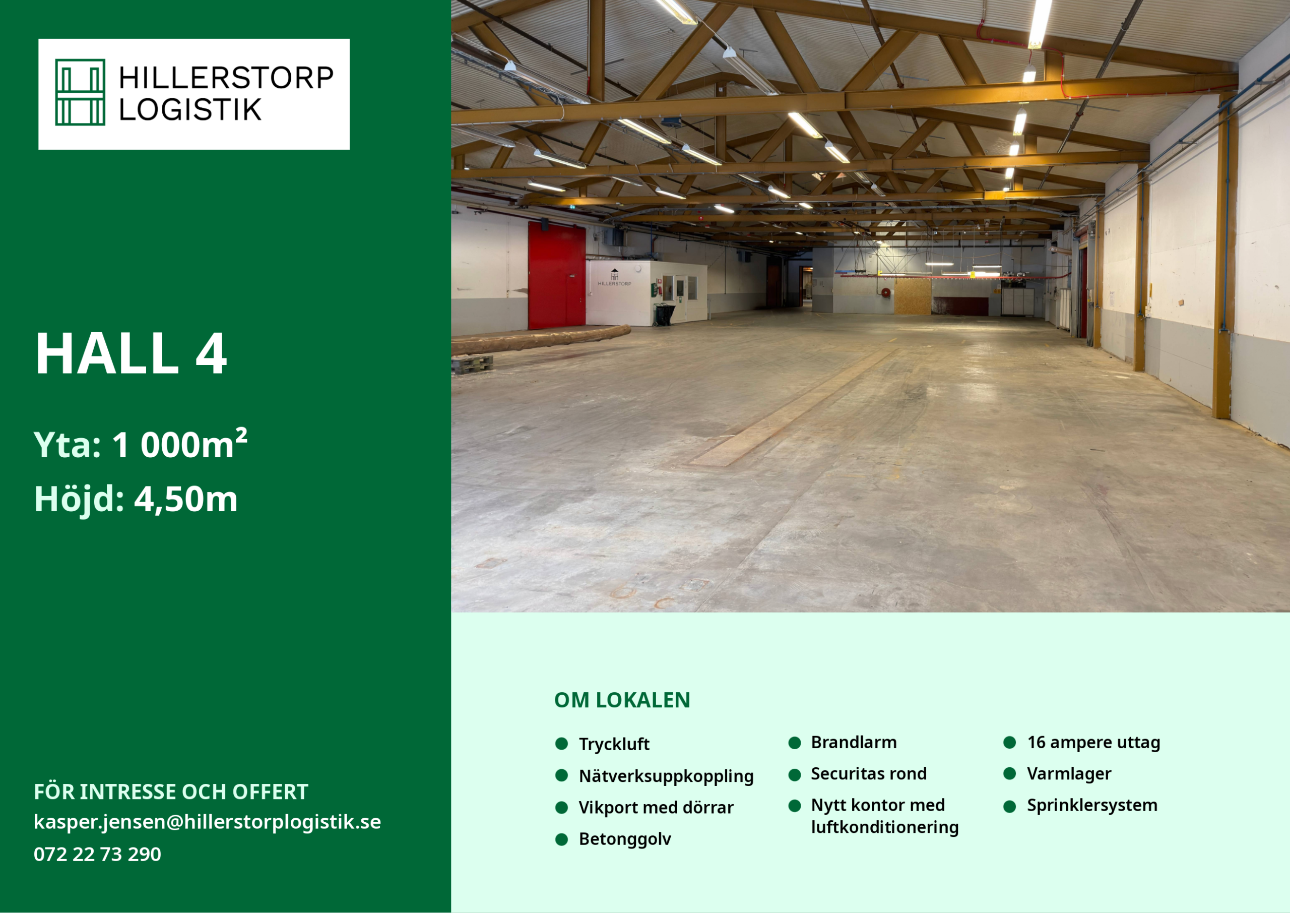 Hillerstorp är en stark placering för företag i hela Sverige och även för verksamheter med flöden in och ut ur landet. Läget i Jönköpingsregionen gör det enkelt att samla lager och hantering på ett ställe och nå kunder och mottagare i flera riktningar. Med rätt yta och rätt bemanning får ni en lösning som går att anpassa när behoven ändras.